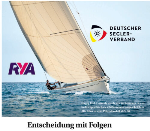 .For German sailors, please note:The RYA Yachtmaster Ocean is now officially accepted by the “Bundesministeriums für Verkehr (BMV)” and is recognised by “Deutscher Segler-Verband (DSV)” for being equal to the German “Sporthochseeschifferschein (SHS)” and can therefore be transformed into a German SHS certificate, if desired. | ![]() |