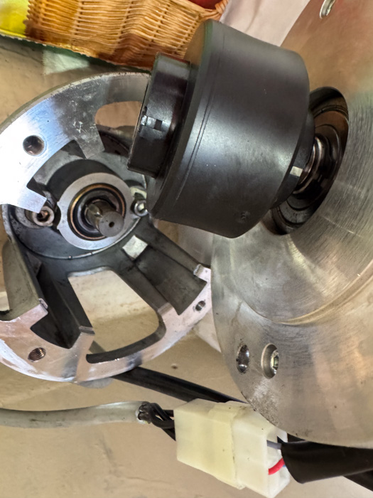 I followed Sleipners advice and opened up the four bolts with an Allen Key and easily lifted off the motor. Right enough, there was black plastic all over the place!